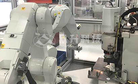 ■ 8工位自动旋铆、压弯、功能测试、打印、机械手自动下线输送综合装配测试设备