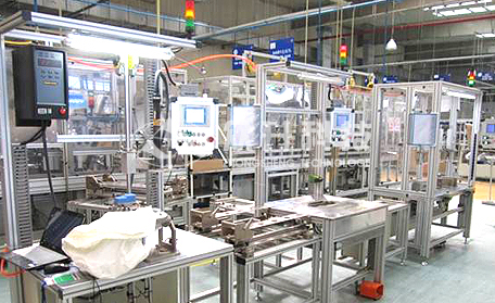 Integrate assy. And check station: 8- station riveting, bending, capability-checking, printing, unloading automatically.